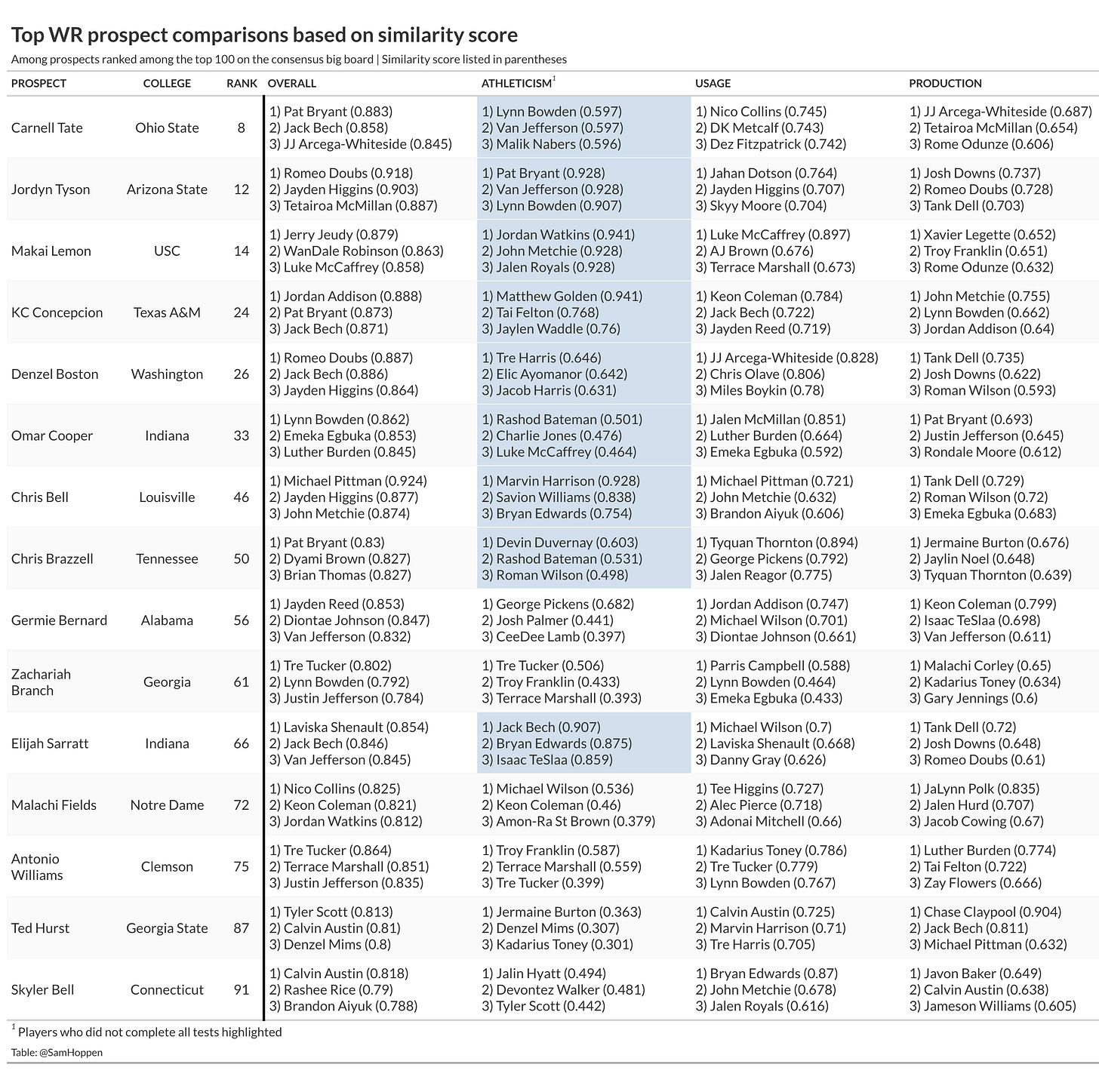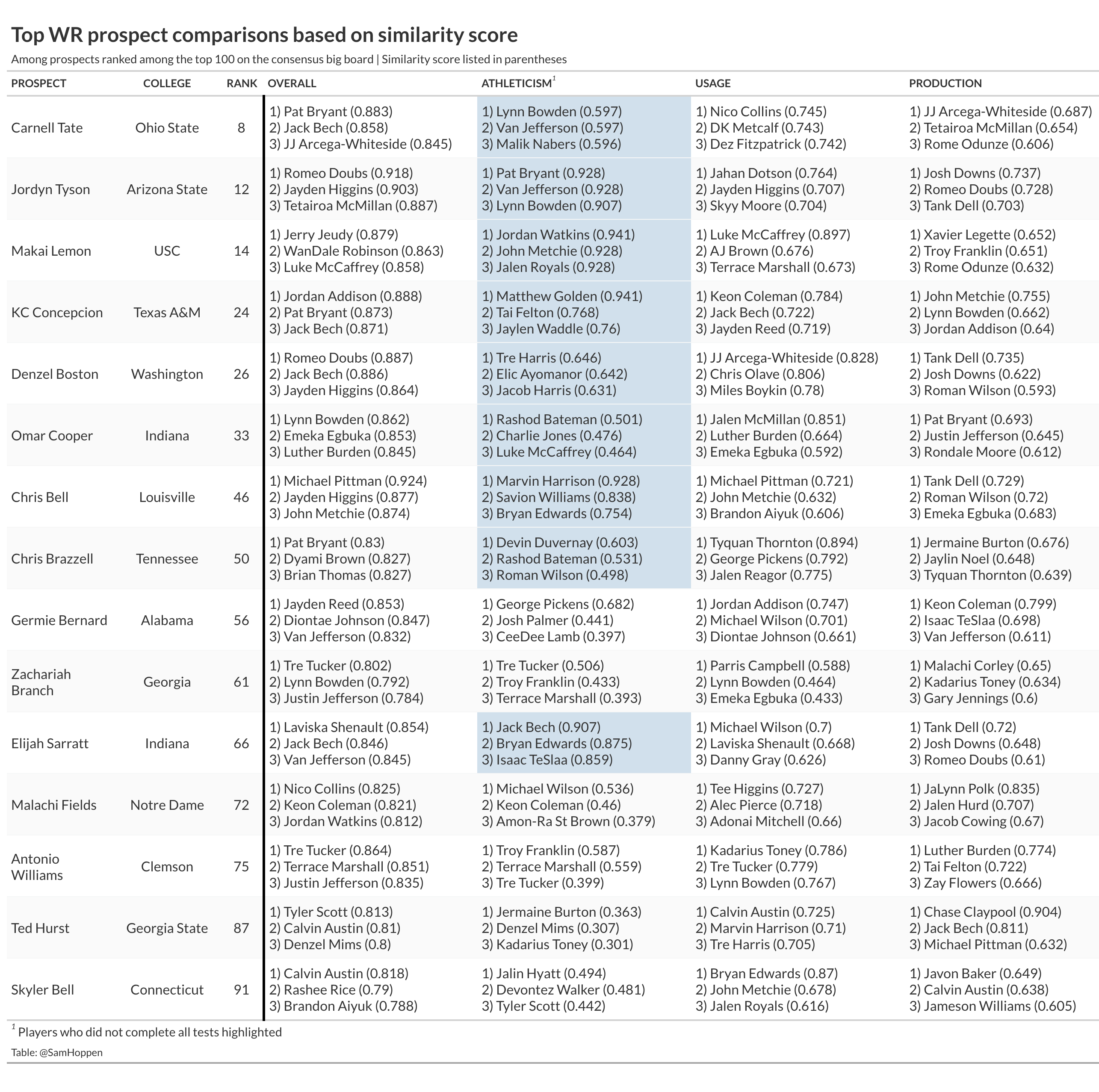 Using similarity scores to compare this year's wide receiver prospects to players from past draft classes